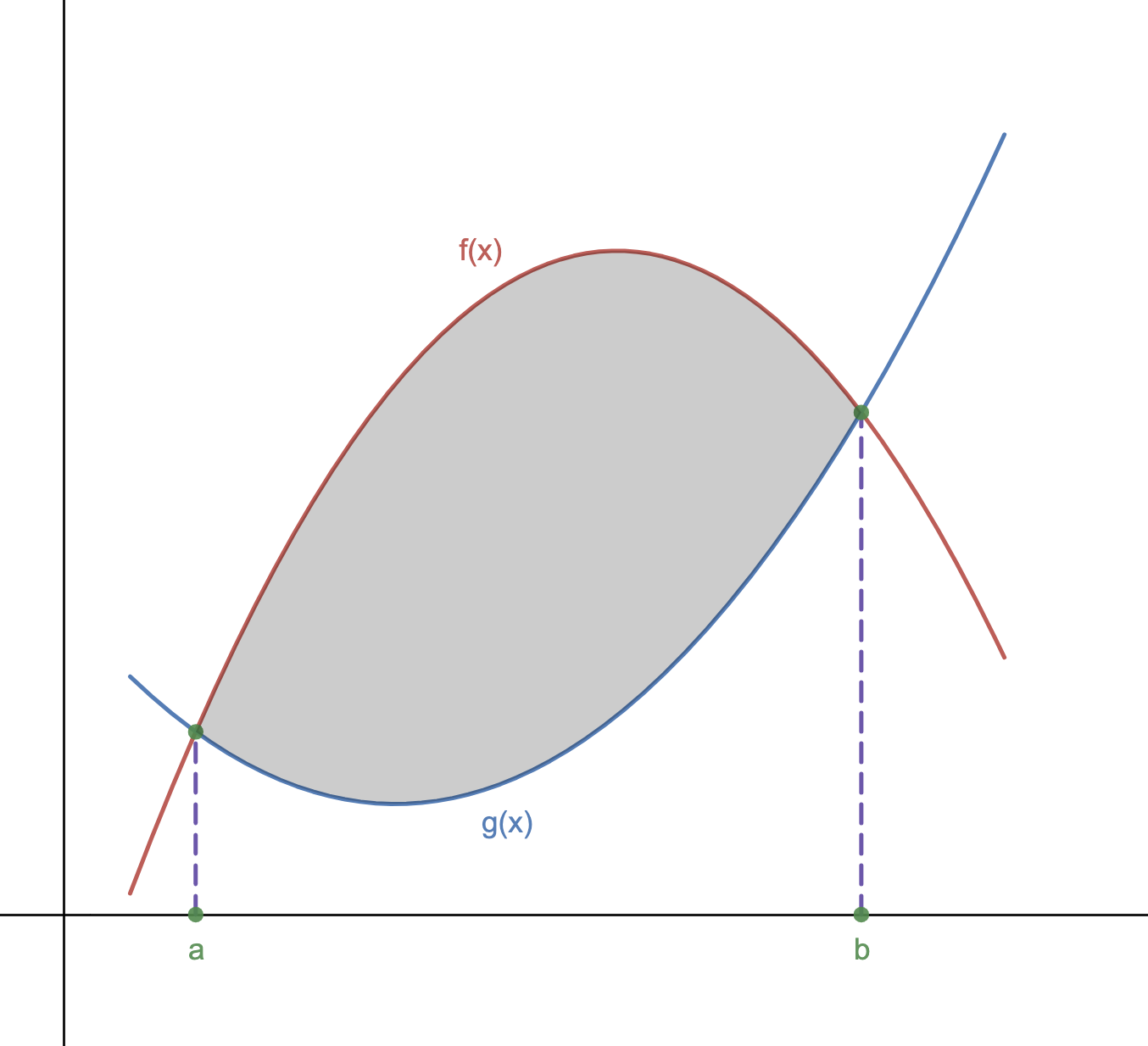3. We could find \(A_g - A_f\) to find the area between the curves.