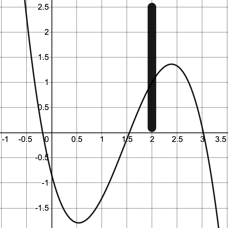Let’s see an example of the application of this theorem. First examine the following picture. Explain why, from the picture, it seems that both assumptions of the theorem hold.